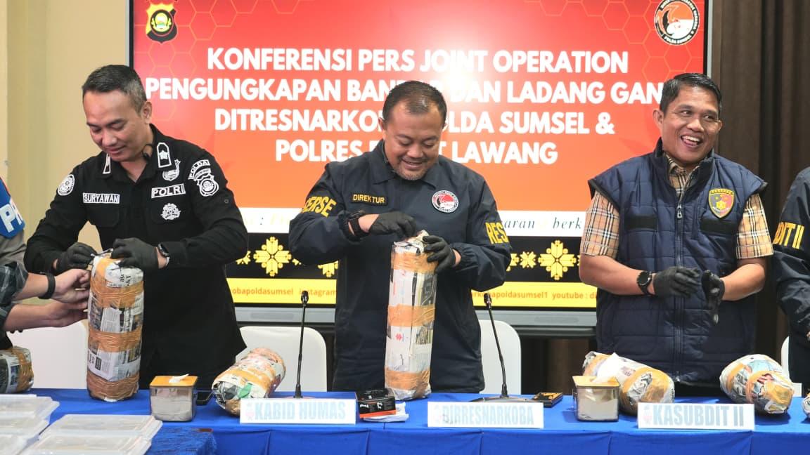 Pengungkapan tersebut disampaikan dalam konferensi pers yang digelar di Lounge Lantai 7 Gedung Presisi Mapolda Sumsel, Kamis, 30 April 2026. Operasi ini merupakan hasil joint operation antara Ditresnarkoba Polda Sumsel dan Satresnarkoba Polres Empat Lawang.