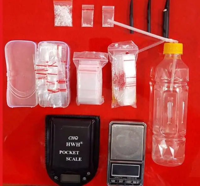 Kemudian, peralatan edar berupa dua unit timbangan digital, dua ball plastik klip bening, serta wadah plastik bekas merk Pepsodent yang digunakan untuk menyimpan plastik klip.